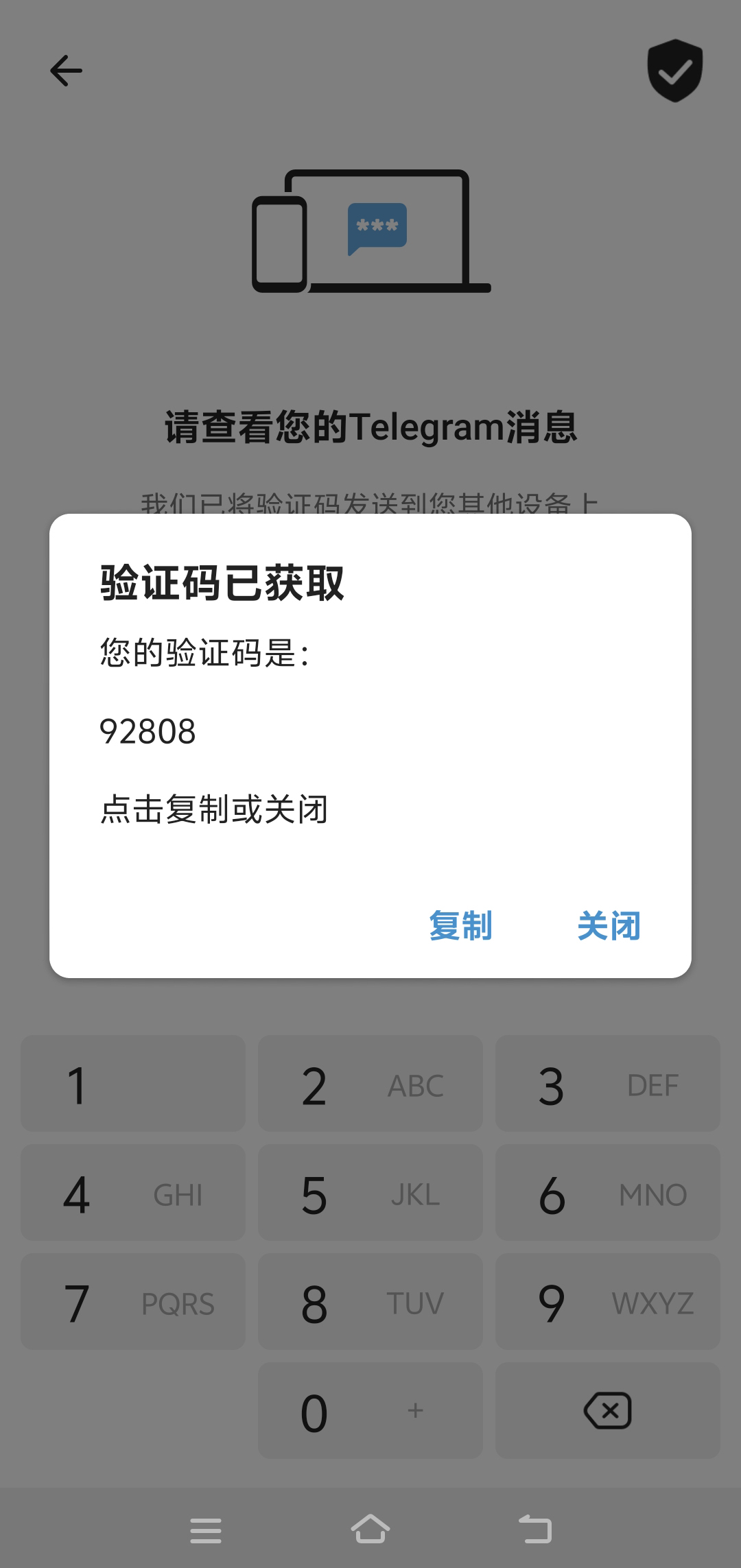 第7步:复制验证码 关闭弹窗